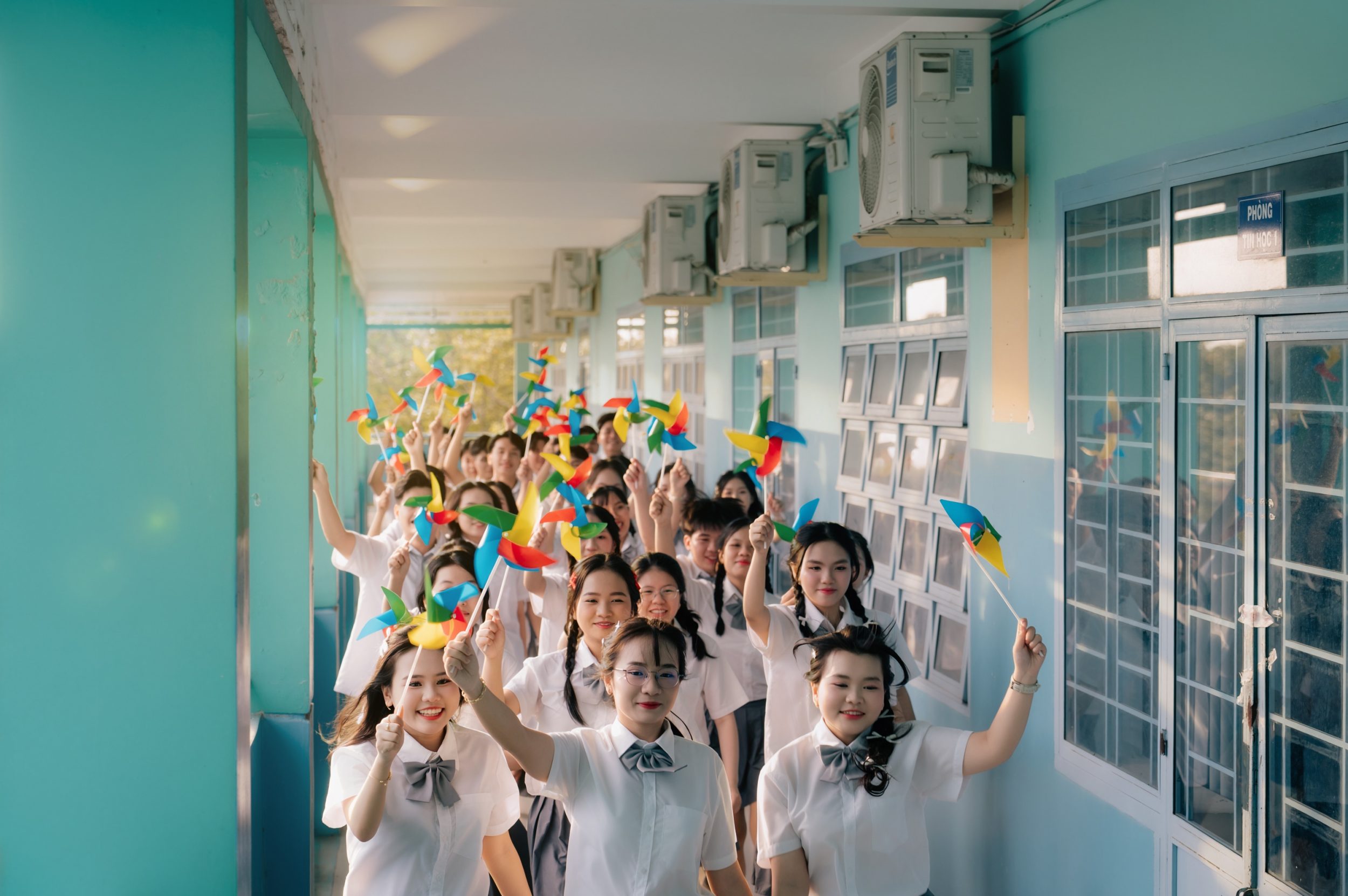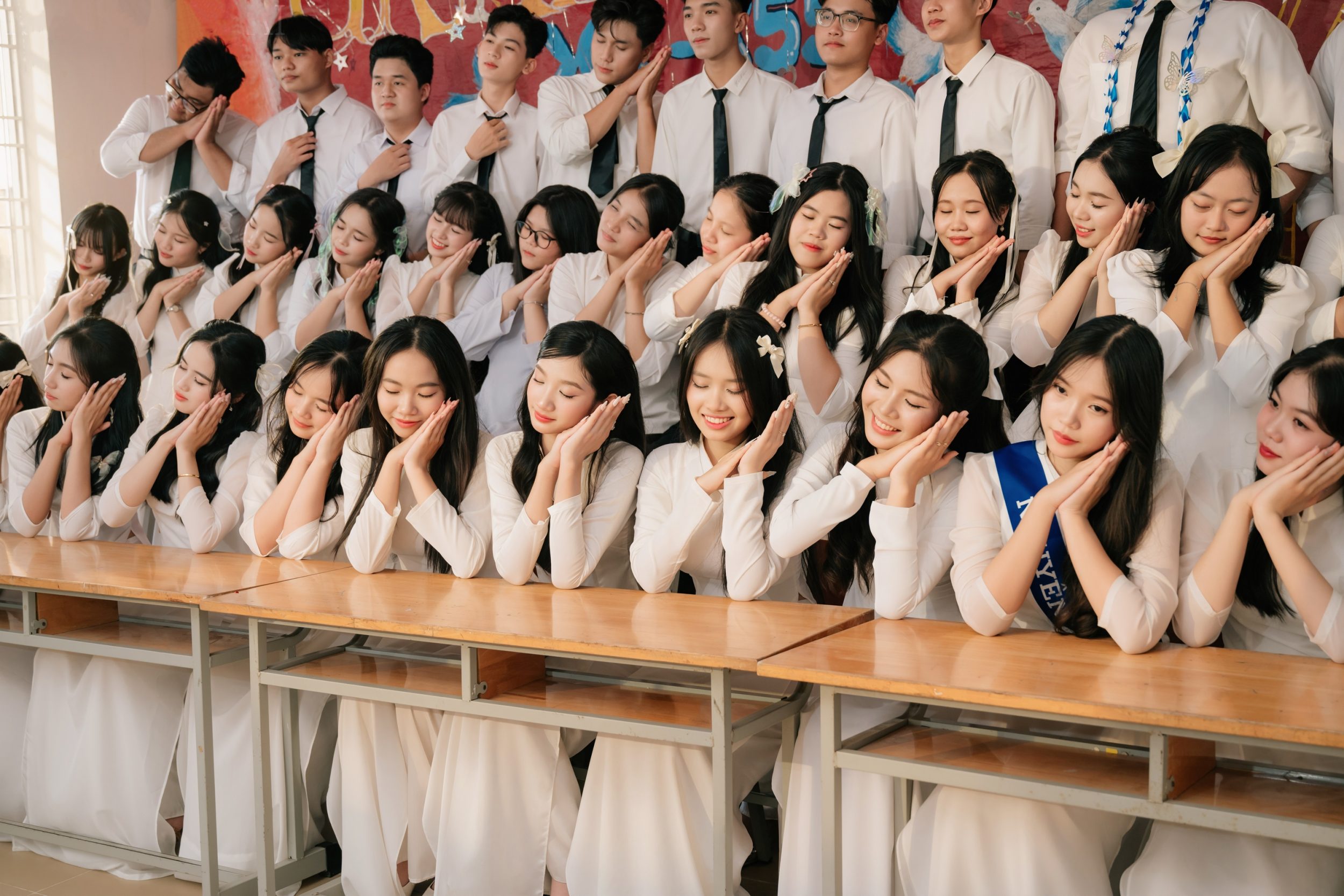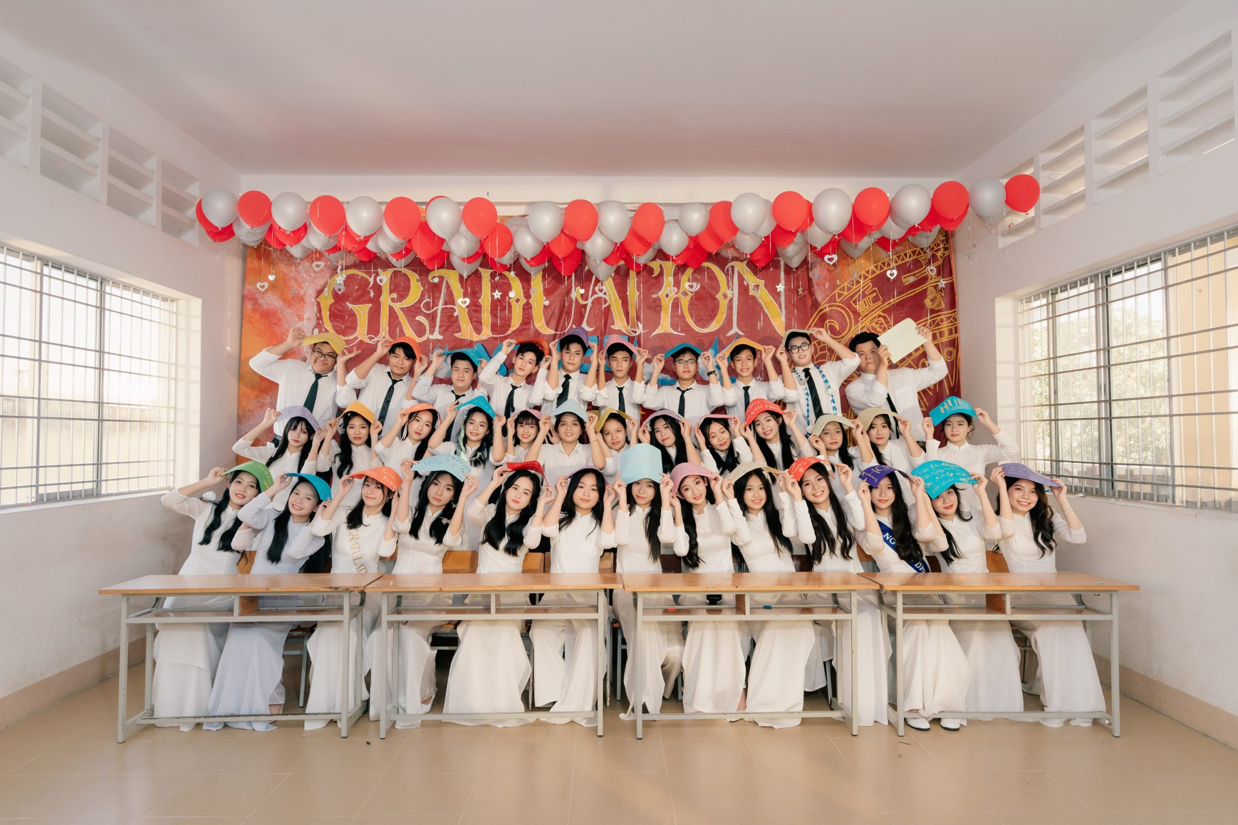 Lớp đông hãy chia nhóm để chụp: nhóm bạn thân, nhóm năng động, nhóm học giỏi… Bố cục rõ ràng giúp album đồng đều hơn. Từng nhóm sẽ có cá tính riêng, tạo sự đa dạng mà không làm tổng thể rối. Kết hợp nhóm – tập thể giúp album trọn vẹn.