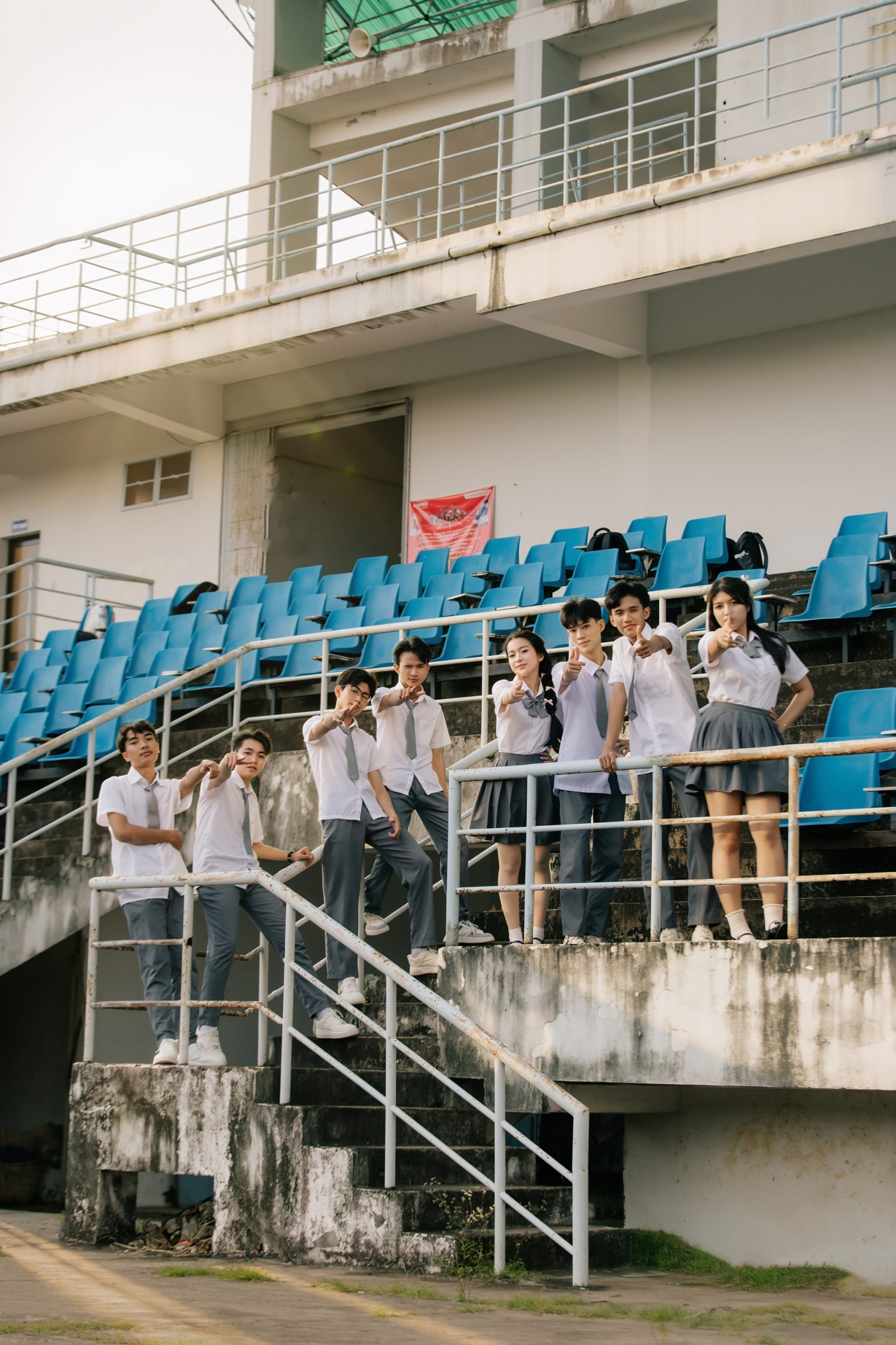 Nếu nói về cách chụp ảnh kỷ yếu đẹp, sân trường là nơi dễ “đúng tinh thần” nhất, vì mọi thứ đều gắn với ký ức. Nhưng chụp sân trường dễ bị rối nếu lớp không biết chọn góc. Góc đẹp thường là góc có nền sạch: hành lang dài, bậc thang, cổng trường, bức tường trơn, hàng cây thẳng. Tránh những nền quá nhiều biển bảng, xe cộ, hoặc người qua lại, vì ảnh sẽ bị loãng.