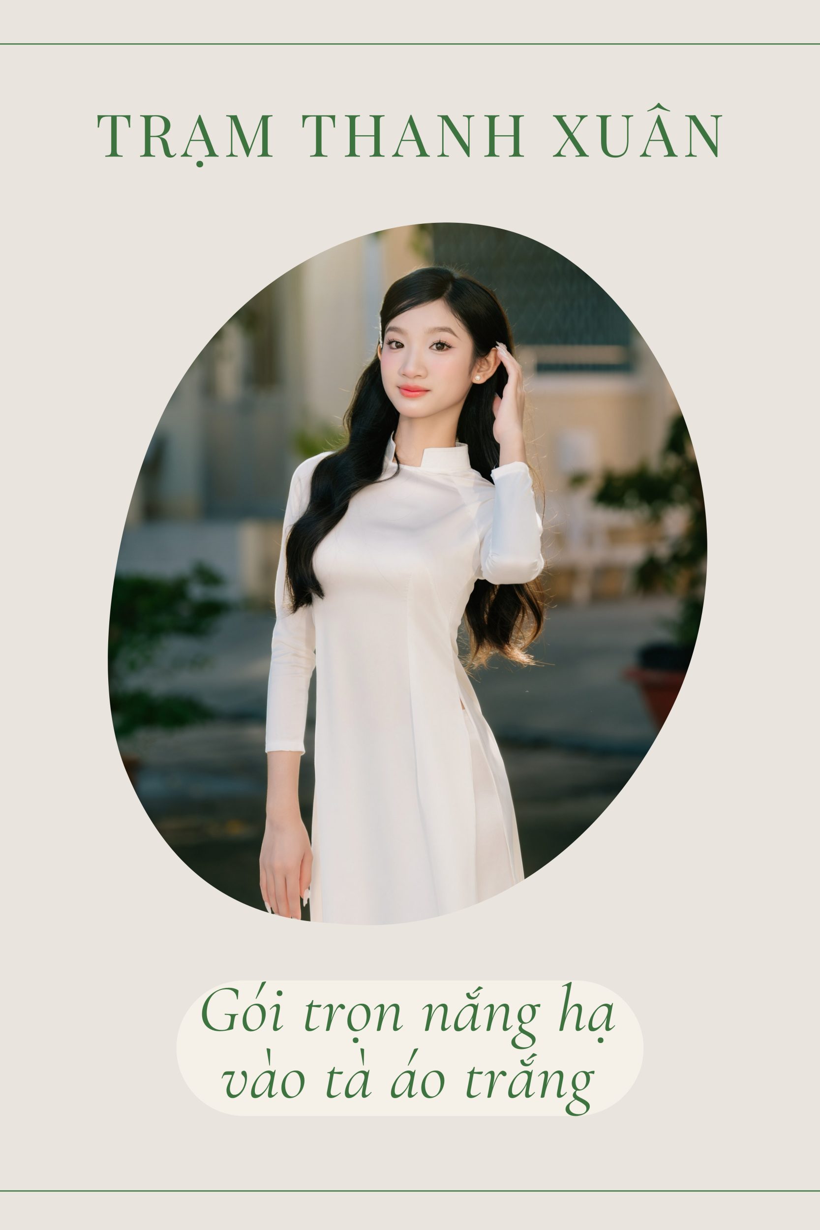 Nhắc đến áo dài chụp kỷ yếu, tone trắng truyền thống vẫn là lựa chọn “an toàn nhưng không hề nhàm”. Trắng lên ảnh rất sáng, tạo cảm giác tinh khôi và đúng tuổi học trò. Tuy nhiên, bạn nên phân biệt trắng tinh và trắng ngà: trắng tinh hợp với da sáng, còn trắng ngà/kem hợp với da trung bình vì không làm da bị xỉn.