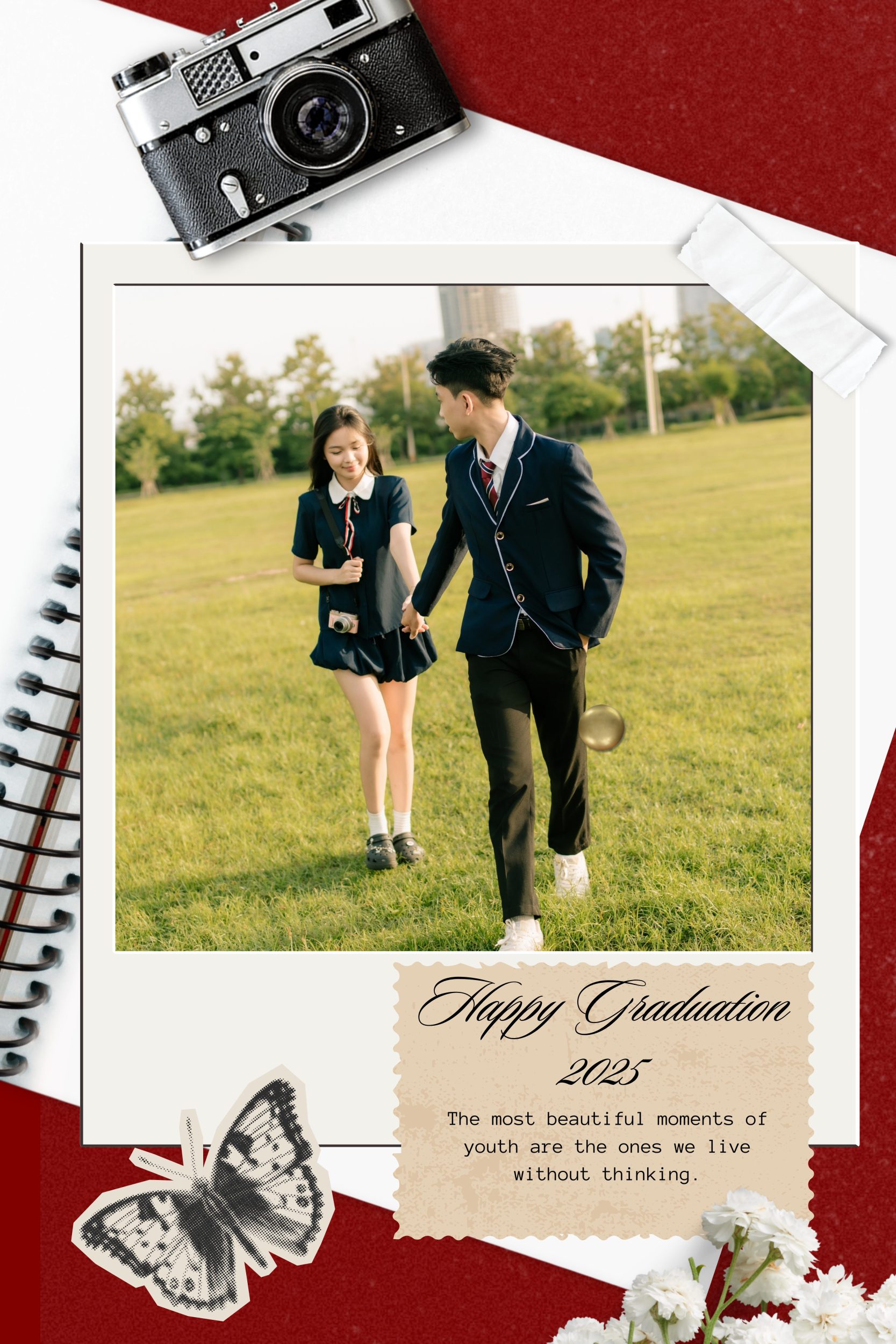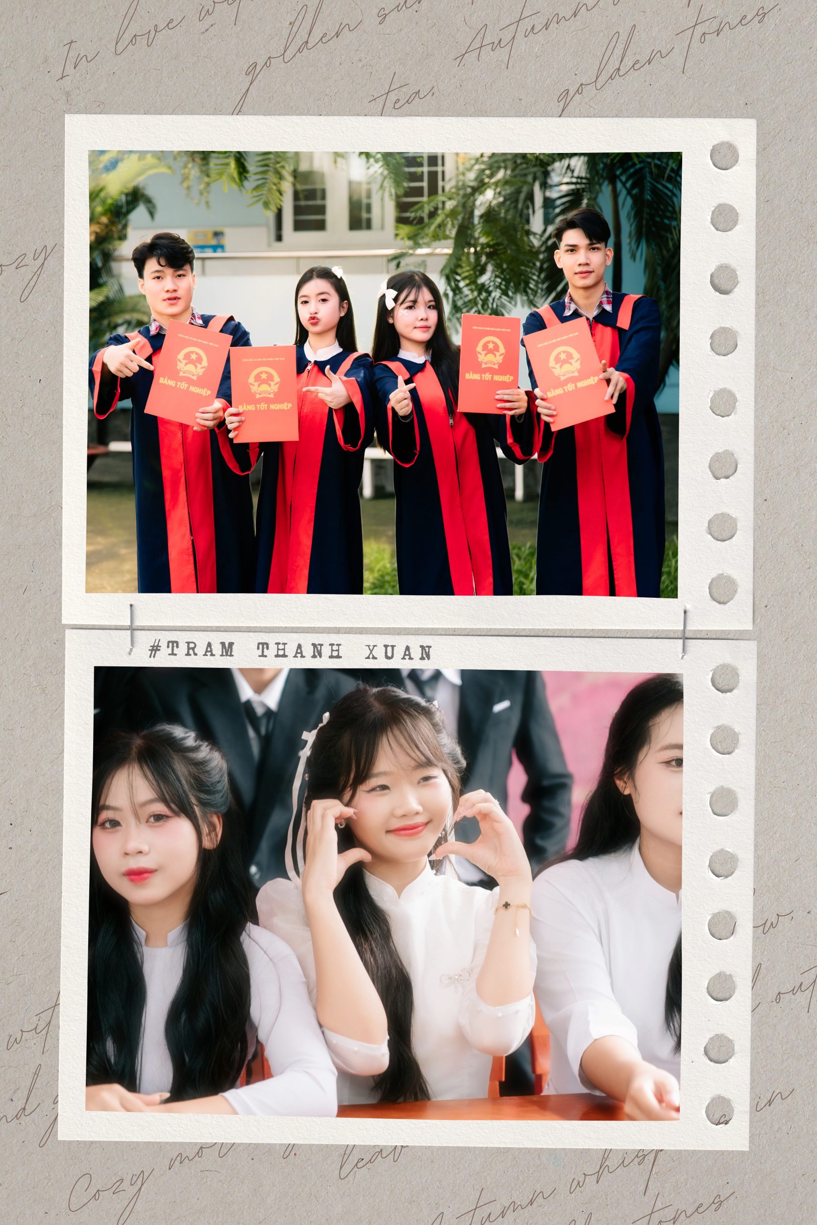 Nếu bạn muốn ảnh “có câu chuyện”, hãy dùng đạo cụ chung: một bó hoa, một cuốn sổ lớp, một chiếc mũ cử nhân. Đạo cụ không cần nhiều, chỉ cần đủ để tay có nhiệm vụ và cảm xúc có điểm tựa.